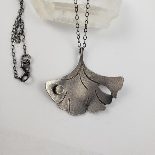 Dewdrop Moonstone Gingko Leaf Necklace